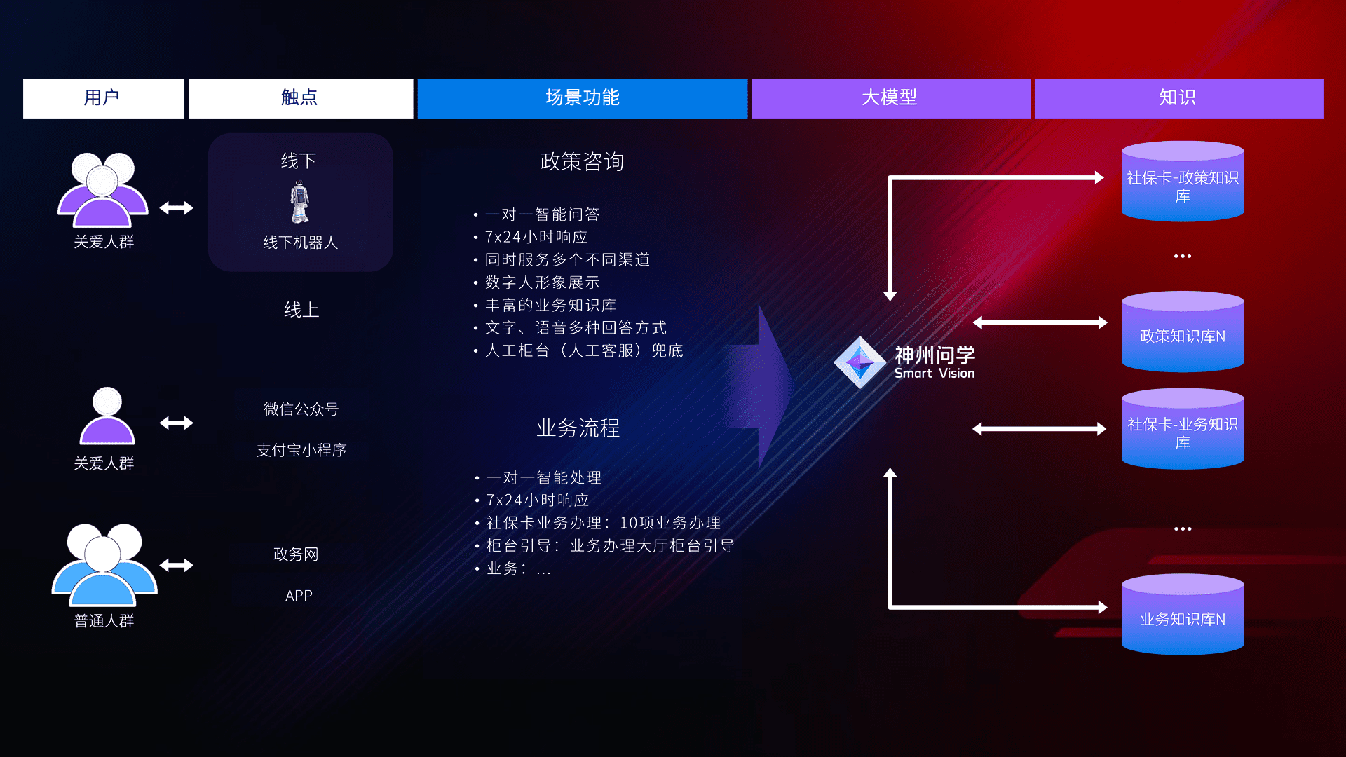 • 线上线下全覆盖:线上提供微信公众号、、支付宝小程序、、、、政务网、、app多种渠道,,,,与线下机器人形成完整服务体系。。。